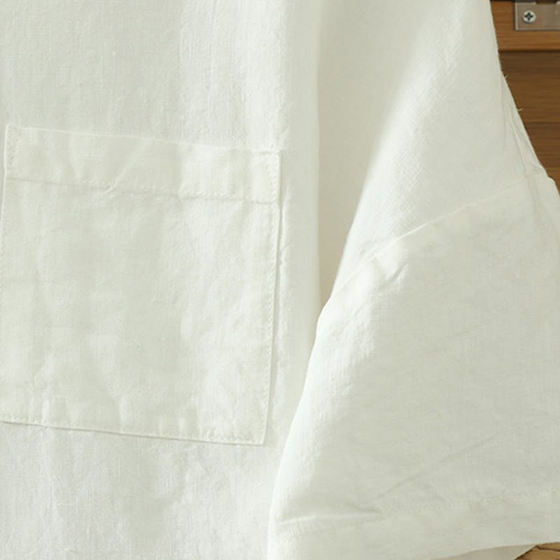 Buddha Stones Casual Plain Women's Cotton Linen V-Neck T-shirt With Pocket - White - US14,UK/AU18,EU46 (2XL) - image 6