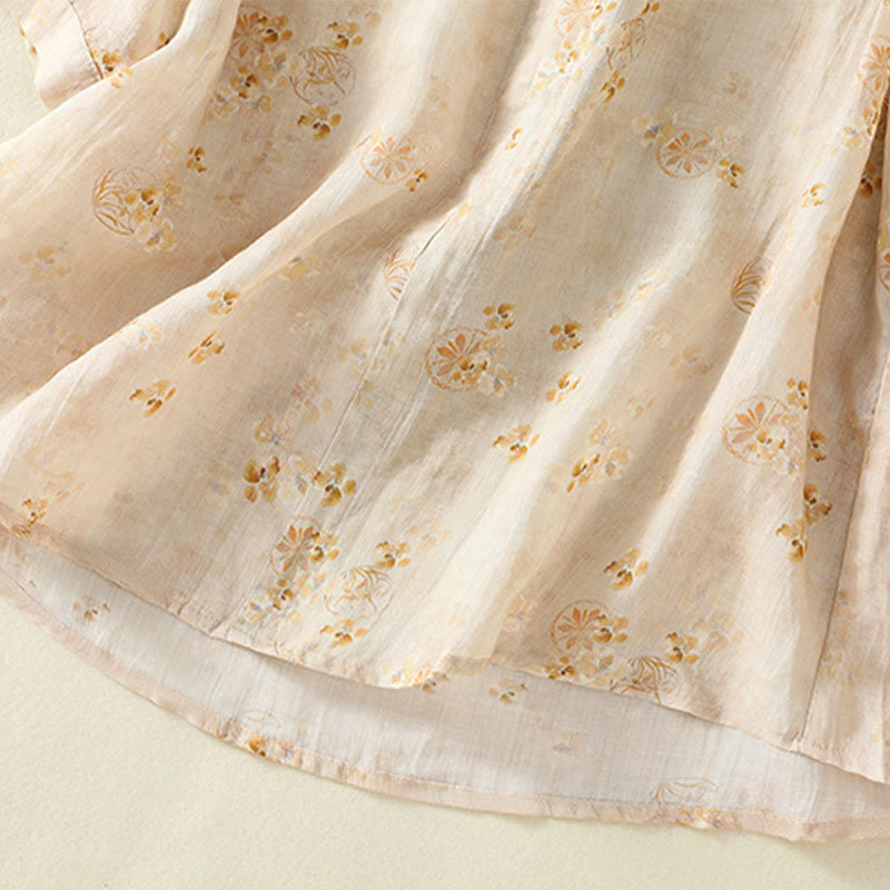 Buddha Stones Printing Frog-Buttons Lapel Half Sleeve Women's Cotton Shirt - Khaki - US8-10,UK/AU12-14,EU40-42 (2XL) - image 16