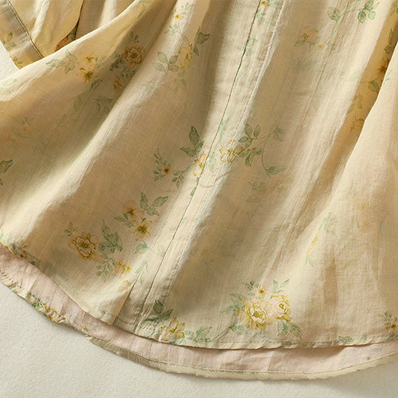 Buddha Stones Printing Frog-Buttons Lapel Half Sleeve Women's Cotton Shirt - LemonChiffon - US8-10,UK/AU12-14,EU40-42 (2XL) - image 8