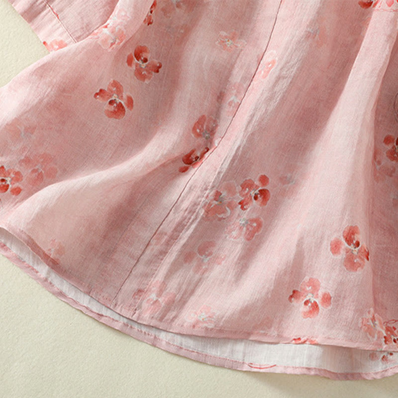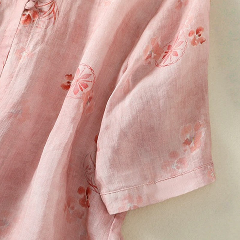 Buddha Stones Printing Frog-Buttons Lapel Half Sleeve Women's Cotton Shirt - LightCoral - US8-10,UK/AU12-14,EU40-42 (2XL) - image 0