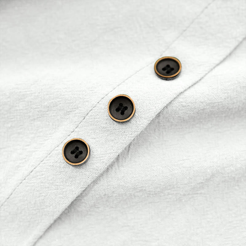 Buddha Stones Casual Summer Pure Color Jacquard Button Crew Neck Cotton Women's Short Sleeve T-Shirt - White - US18,UK/AU22,EU50 (5XL) - image 0
