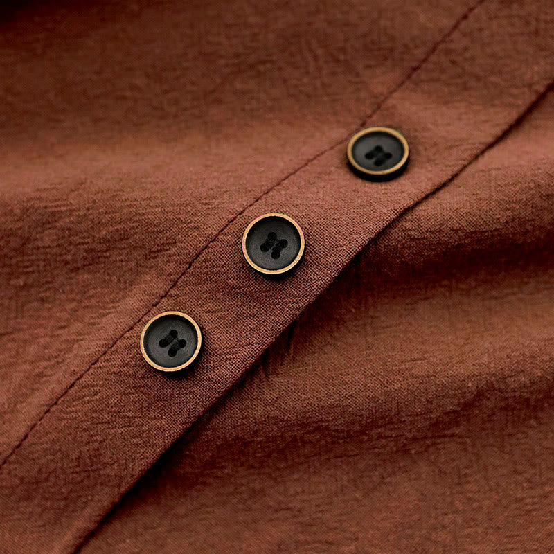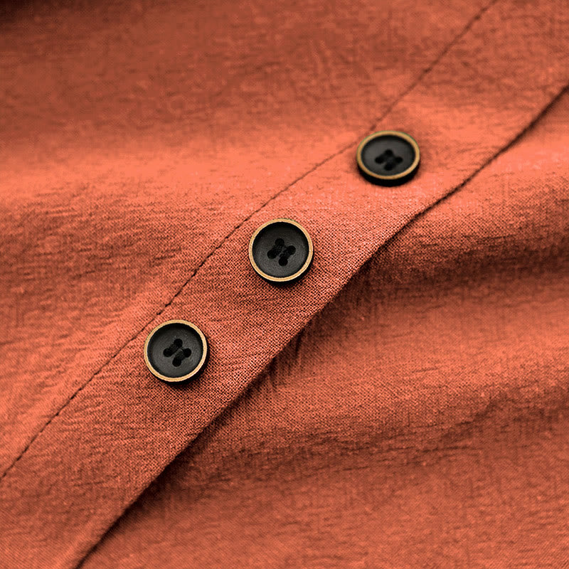 Buddha Stones Casual Summer Pure Color Jacquard Button Crew Neck Cotton Women's Short Sleeve T-Shirt - Sienna - US18,UK/AU22,EU50 (5XL) - image 25