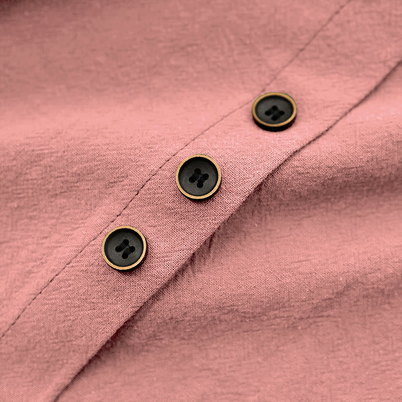 Buddha Stones Casual Summer Pure Color Jacquard Button Crew Neck Cotton Women's Short Sleeve T-Shirt - Salmon - US18,UK/AU22,EU50 (5XL) - image 35