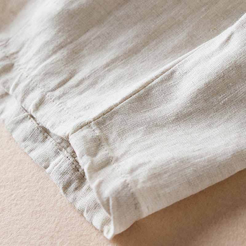 Buddha Stones Colored Thread 7-8 Length Women's Harem Cotton Linen Pants With Pockets