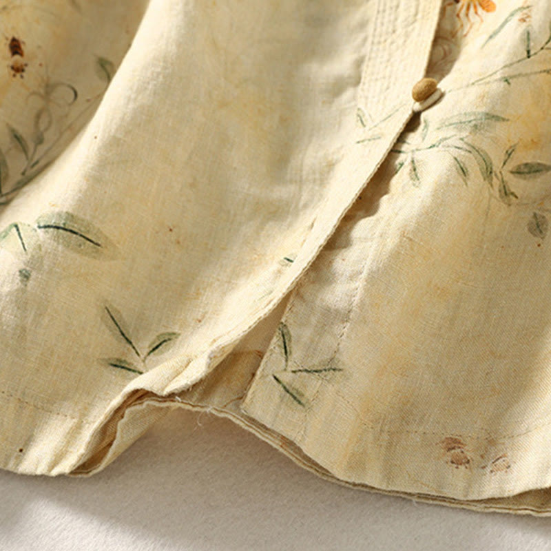 Buddha Stones Commute Chinese Frog-Button Long Lantern Sleeve Women's Cotton Linen Shirt - LemonChiffon - US12,UK/AU16,EU44 (2XL) - image 1