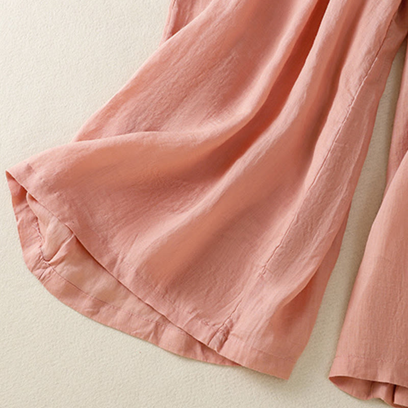 Buddha Stones Commute Embroidery Drawstring Women's Cotton Wide Leg Pants With Pockets