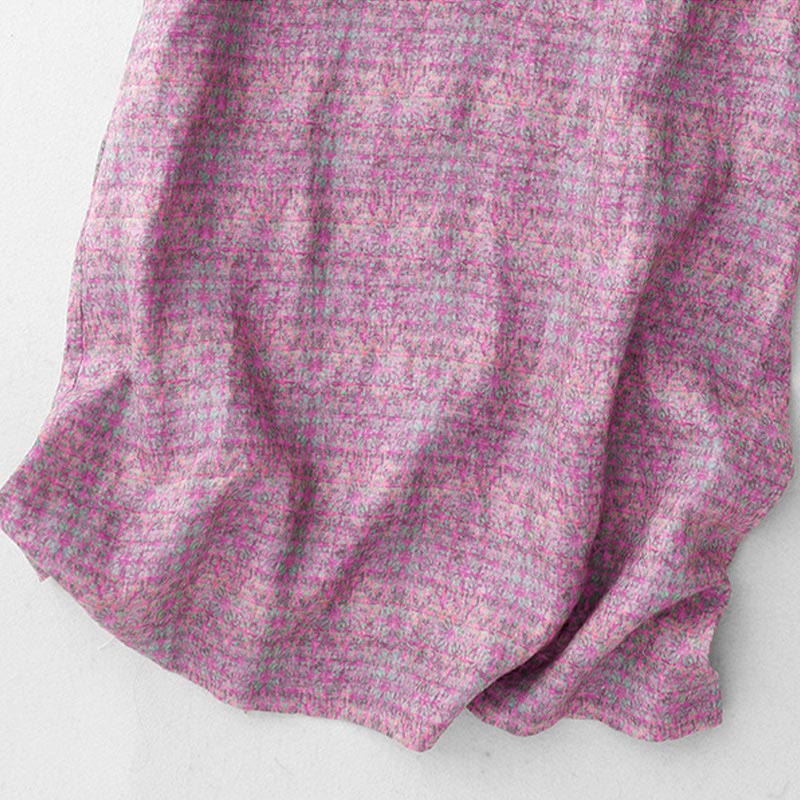 Buddha Stones Commute Printing Floral Pattern Short Sleeve Cotton Linen Midi Dress With Pockets - Orchid - US8-10,UK/AU12-14,EU40-42 (2XL) - image 1