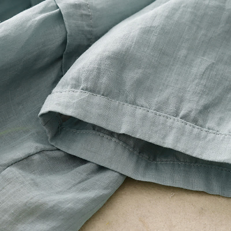 Buddha Stones Embroiderd Front Button Design Women's Cotton Three Quarter Sleeve Shirt