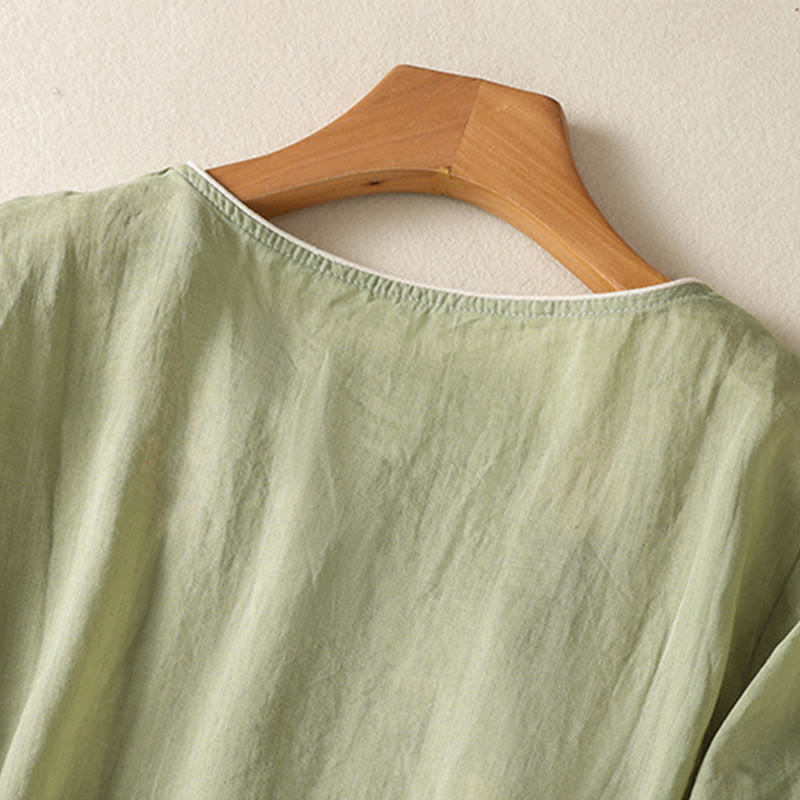 Buddha Stones Embroidery Flower Hem Slit Design Half Sleeve Cotton Linen Zen Midi Dress - LightGreen - US8-10,UK/AU12-14,EU40-42 (2XL) - image 0