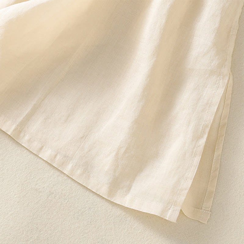 Buddha Stones Embroidery Flower Hem Slit Design Half Sleeve Cotton Linen Zen Midi Dress - Beige - US8-10,UK/AU12-14,EU40-42 (2XL) - image 6