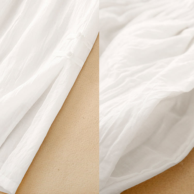 Buddha Stones Frog-Button Hem Slit Design Women's Wide Leg Cotton Linen Pants With Pockets - White - US8-10,UK/AU12-14,EU40-42 (2XL) - image 8