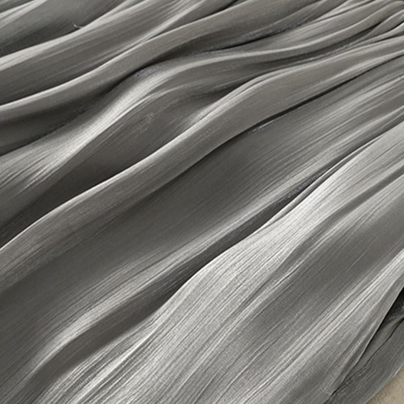 Buddha Stones Light Gray Pleated Design Elastic Waist Women's Wide Leg Pants With Pockets