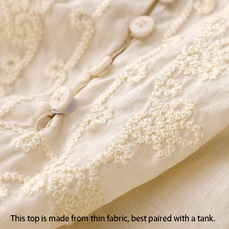 Buddha Stones Line Embroidery Button Crew Neck Half Sleeve Women's Cotton Shirt - Linen - US14,UK/AU18,EU46 (2XL) - image 5