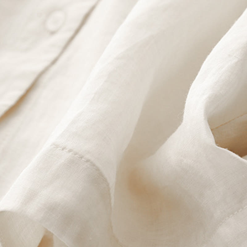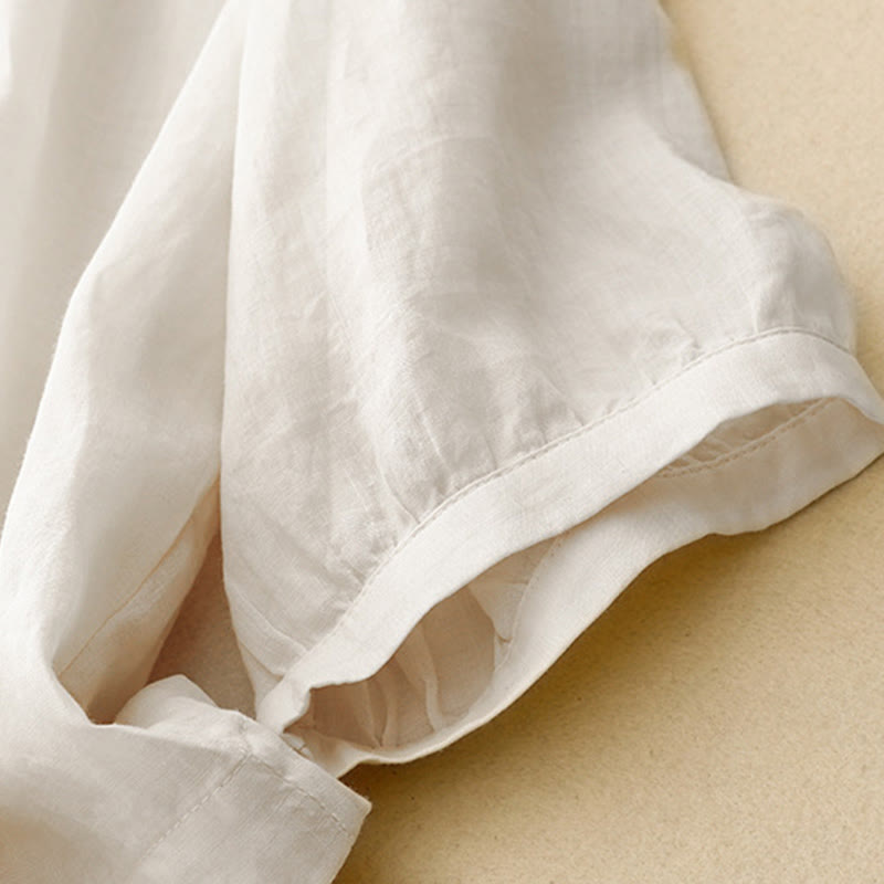 Buddha Stones Plain Button Crew Neck Design Women's Cotton blend Three Quarter Sleeve Shirt