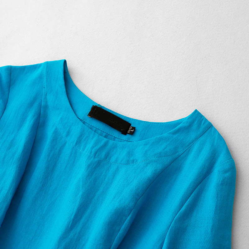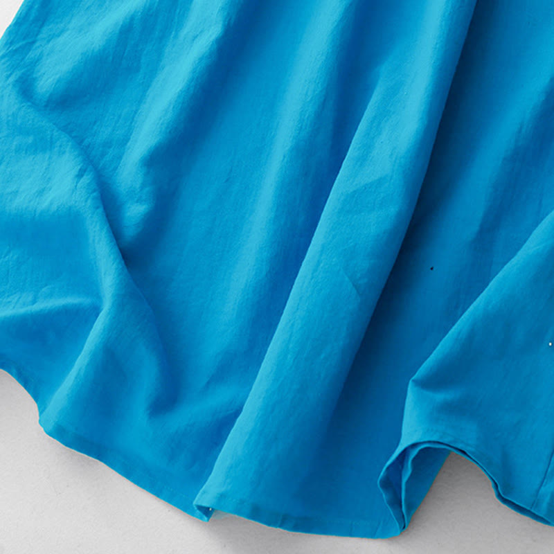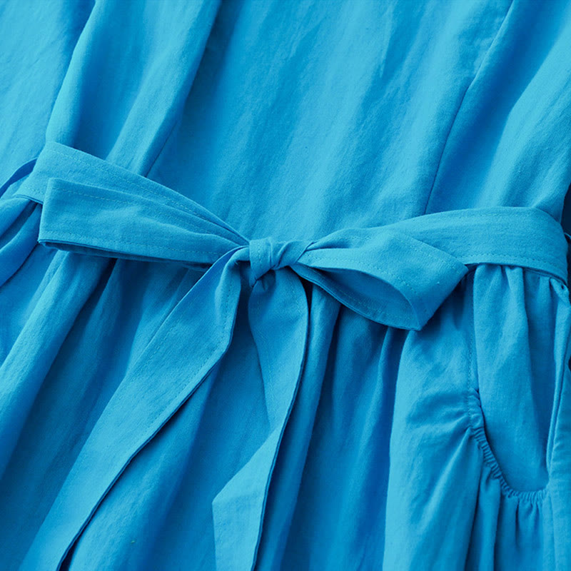Buddha Stones Plain Long Sleeve Lace-up Desgin Women's Cotton Midi Dress With Pockets - DeepSkyBlue - US8-10,UK/AU12-14,EU40-42 (2XL) - image 0