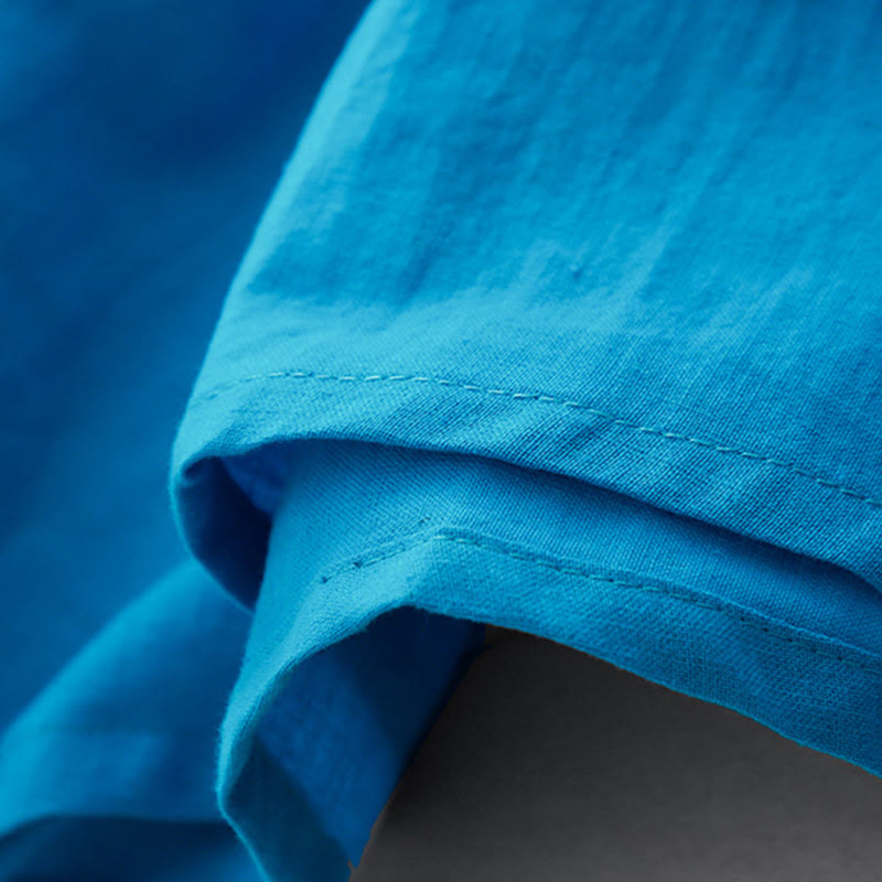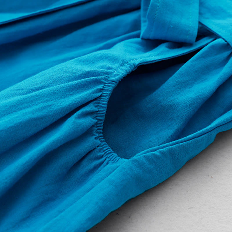 Buddha Stones Plain Long Sleeve Lace-up Desgin Women's Cotton Midi Dress With Pockets