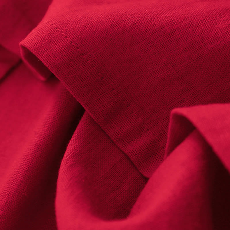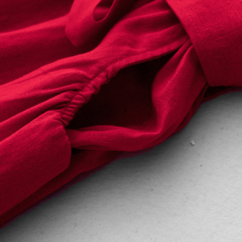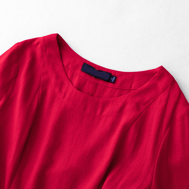 Buddha Stones Plain Long Sleeve Lace-up Desgin Women's Cotton Midi Dress With Pockets - Red - US8-10,UK/AU12-14,EU40-42 (2XL) - image 11