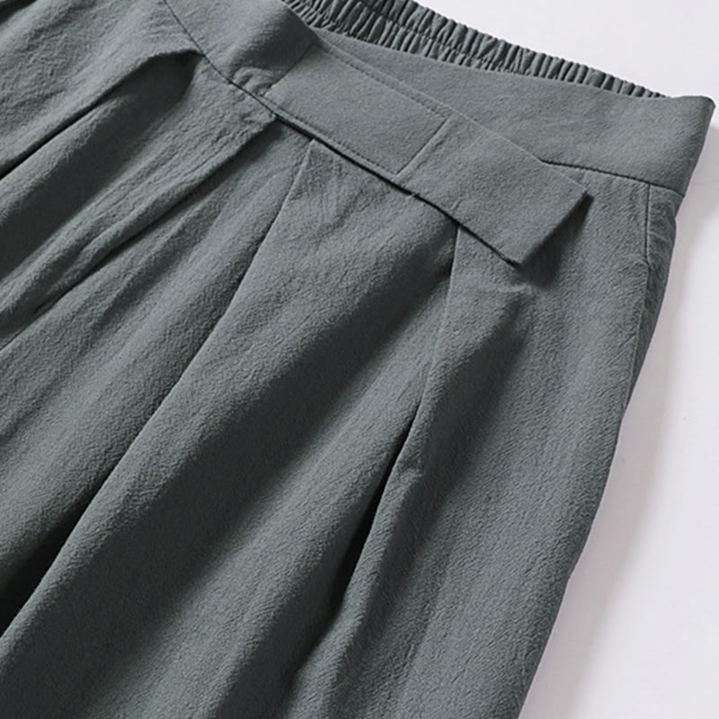 Buddha Stones Plain Straight Leg Zipper Design Men's Cotton Linen Pants With Pockets - image 8