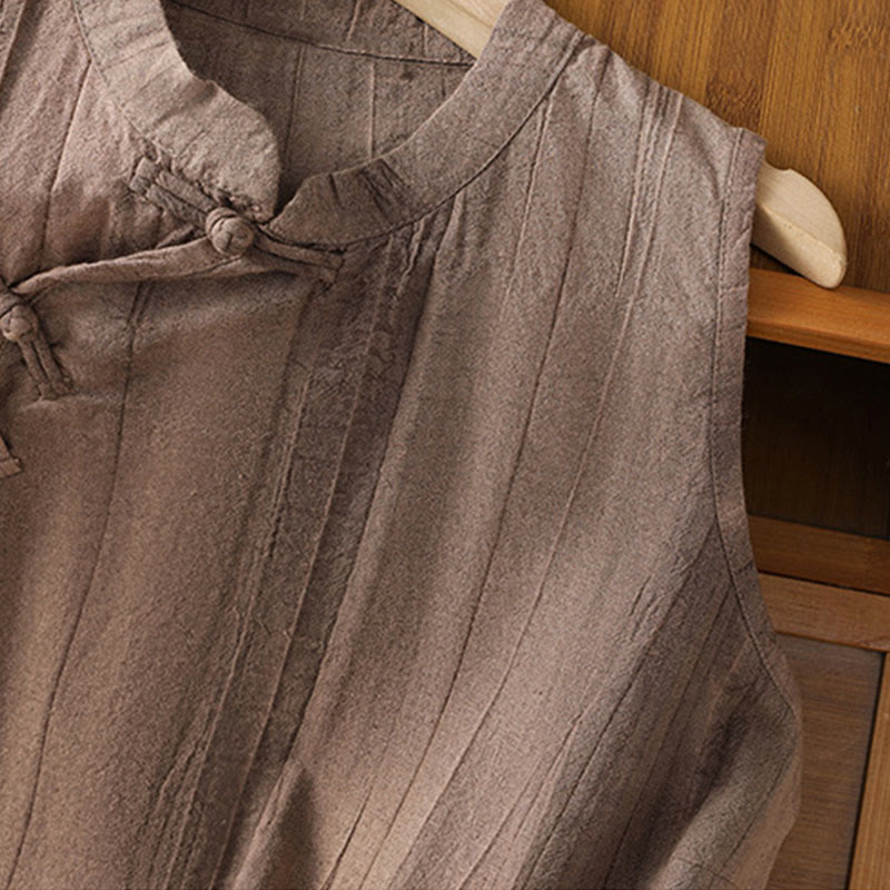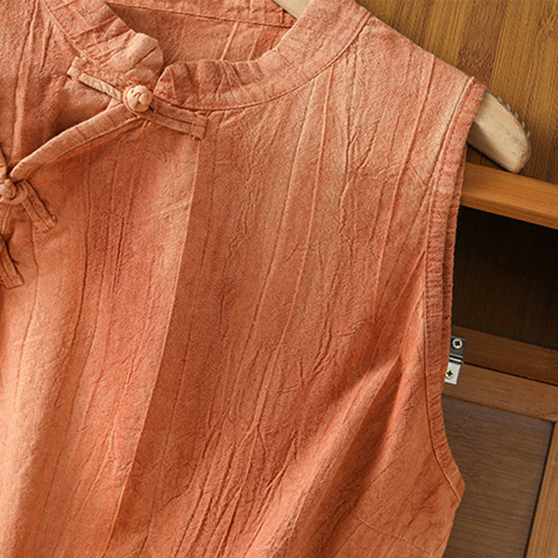 Buddha Stones Retro Frog-Button Design Women's Cotton Sleeveless Vest
