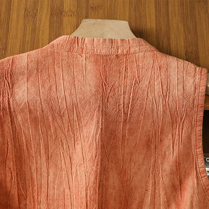 Buddha Stones Retro Frog-Button Design Women's Cotton Sleeveless Vest - Orange - US8-10,UK/AU12-14,EU40-42 (2XL) - image 1