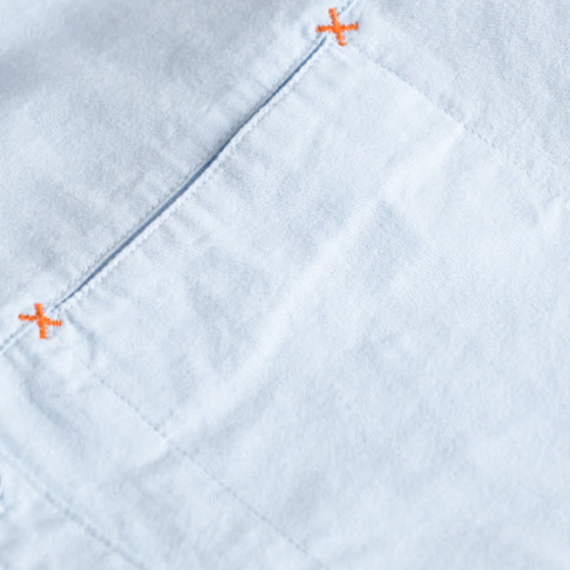 Buddha Stones Spring Solid Buttons Down Decorative Pocket Men's Stand Collar Long Sleeve Cotton Shirt - LightBlue - US/UK/AU42,EU52 (3XL) - image 0