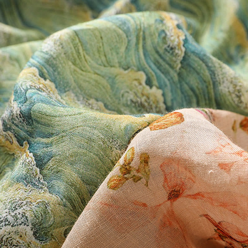 Buddha Stones Summer Casual Printing Frog-Button Design Women's Cotton Linen Long Sleeve Shirt