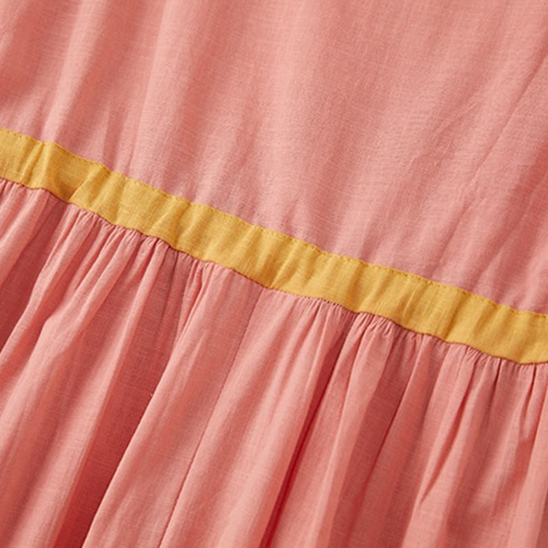 Buddha Stones Summer Casual Stitching Color Lace-up Design V-Neck Short Sleeve Midi Dress - LightCoral - US8-10,UK/AU12-14,EU40-42 (2XL) - image 0