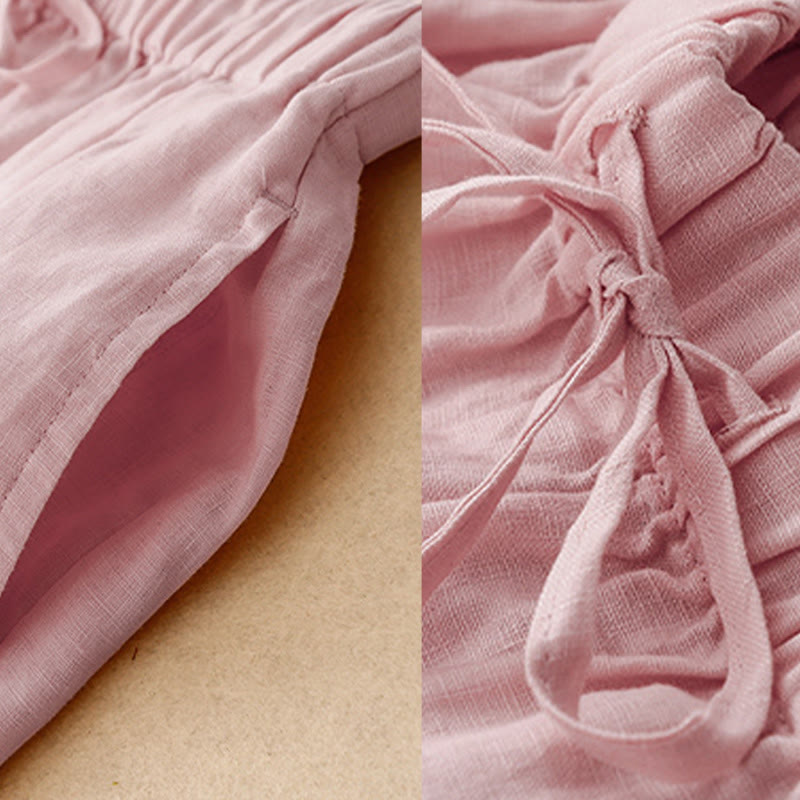 Buddha Stones Summer Elastic Waist Women's Capri Cropped Wide Leg Pants With Pockets - LightPink - US14,UK/AU18,EU46 (3XL) - image 7