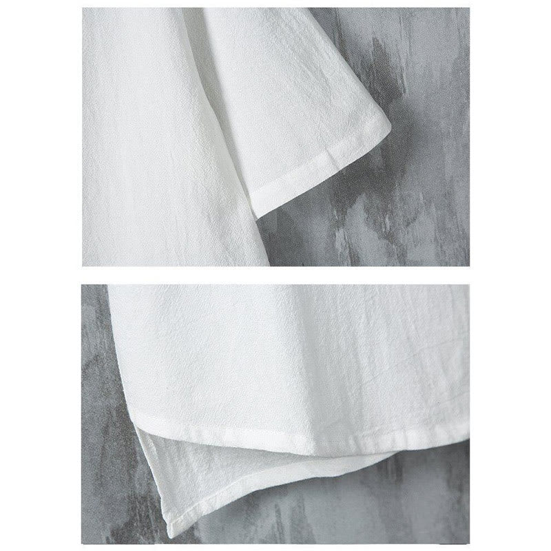 Buddha Stones Summer Plain Tang Suit Frog-Button Design Men's Short Sleeve Cotton Shirt - White - US/UK/AU46,EU56 (5XL) - image 2