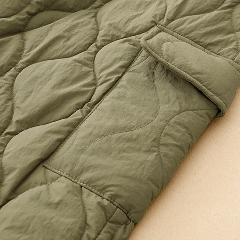Buddha Stones Winter Curved Lines Elastic Waist Drawstring Cotton Thermal Women's Pants With Pockets