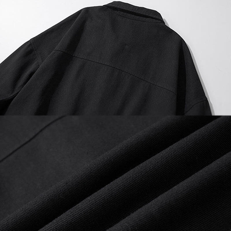 Buddha Stones Long Sleeve Button Stand Collar Design Men's Cotton Jacket Shirt With Pockets - Black - US/UK/AU50,EU60 (5XL) - image 0