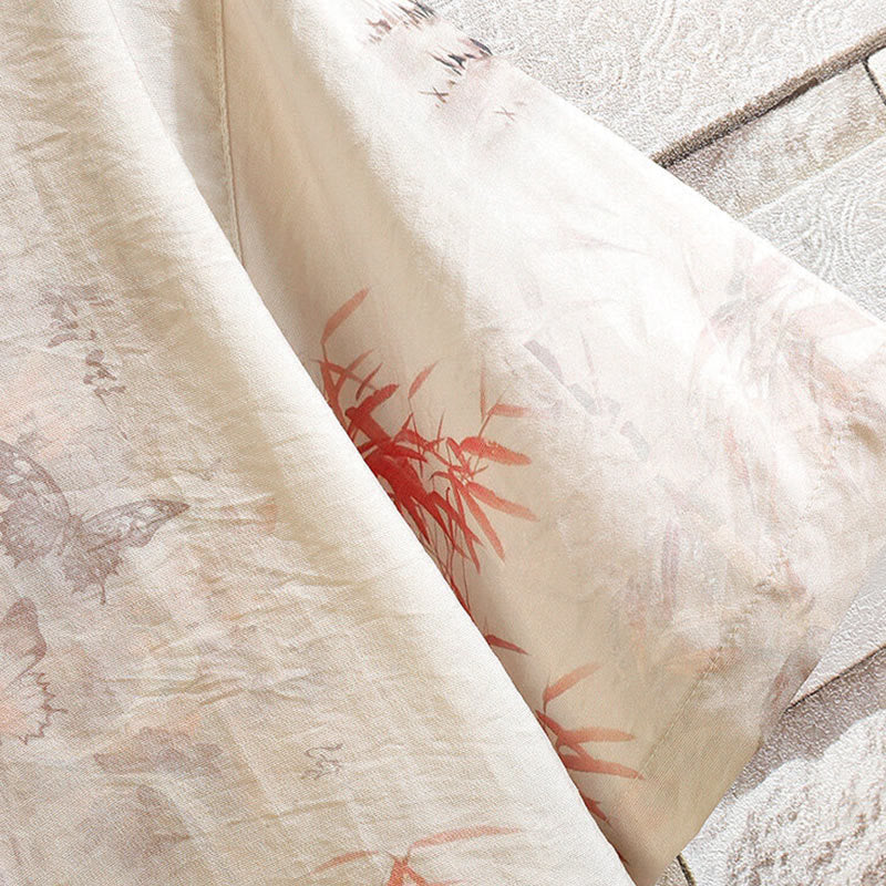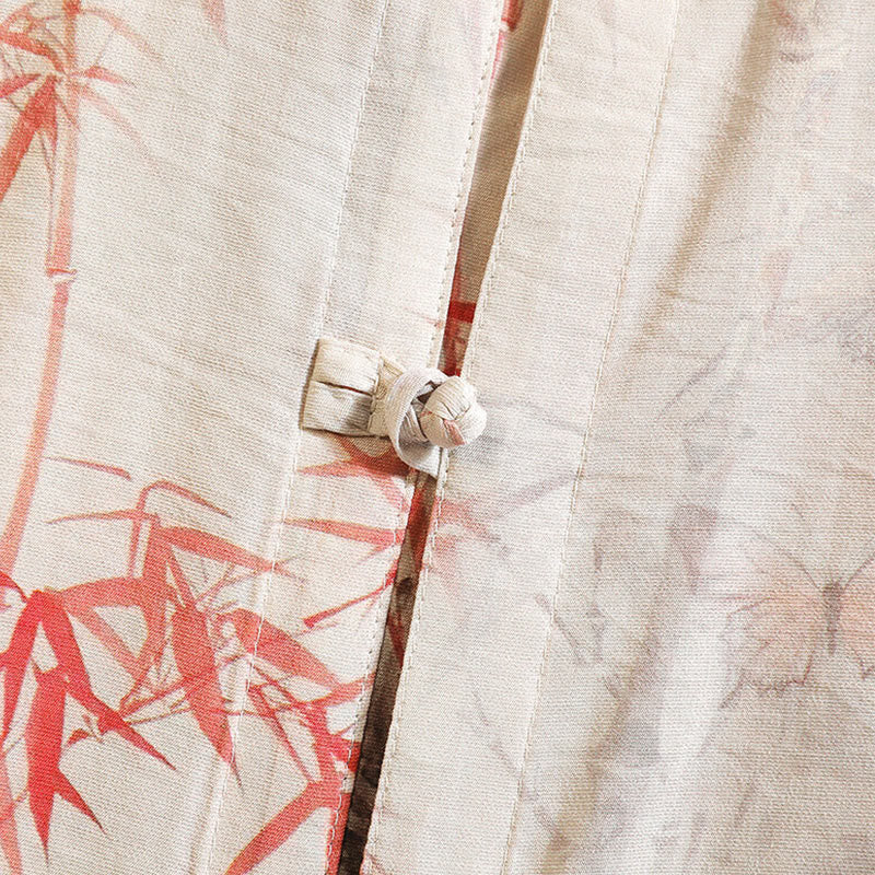 Buddha Stones Summer Bamboo Butterfly Pattern Short Sleeve Frog-button Design Men's Shirt Jacket - Beige - US/UK/AU46,EU56 (5XL) - image 0