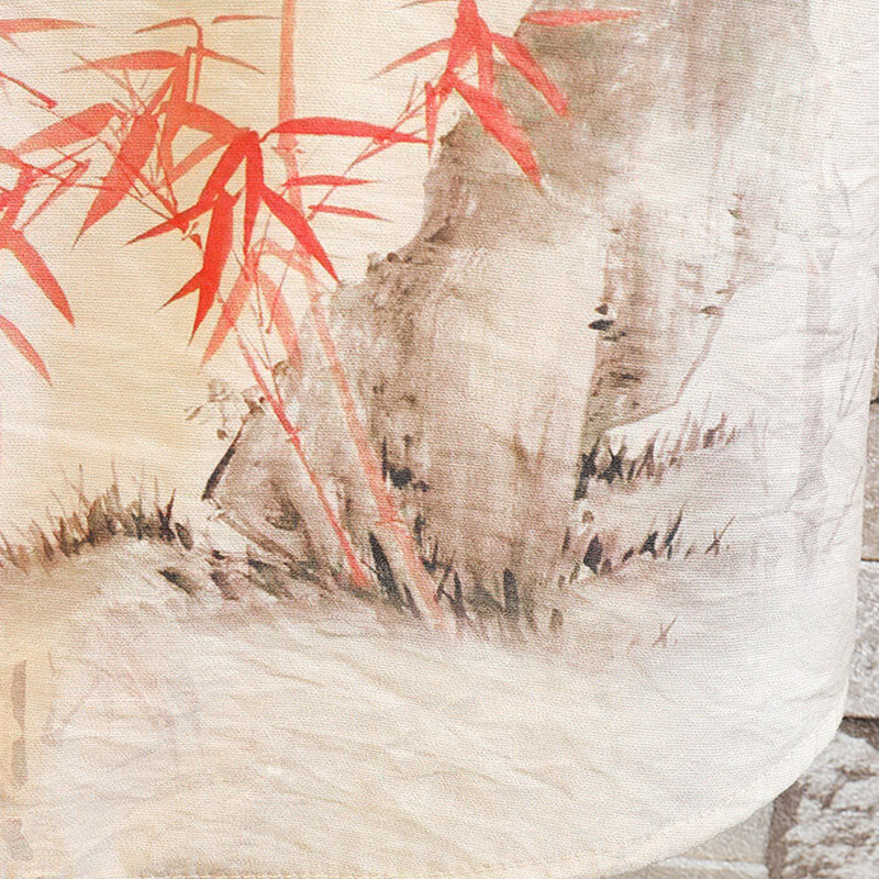 Buddha Stones Summer Bamboo Butterfly Pattern Short Sleeve Frog-button Design Men's Shirt Jacket - image 3