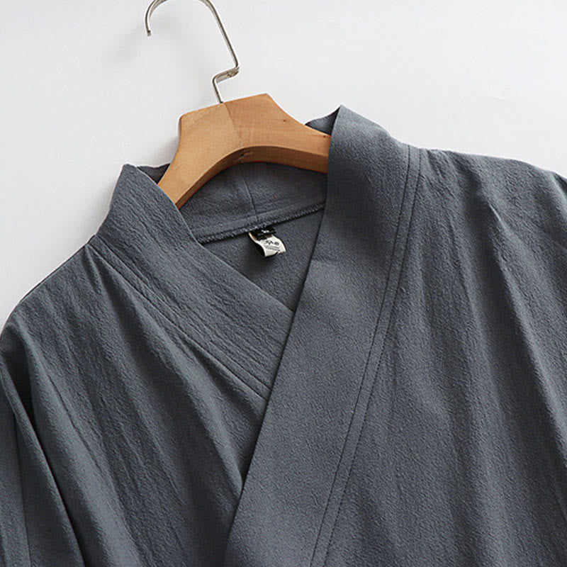 A Taoist robe is a traditional garment worn in Taoist culture. It features a loose, flowing design with wide sleeves and an overlapping front, symbolizing simplicity, harmony, and ease. Made from comfortable fabrics like cotton or linen, it is commonly used for meditation, Tai Chi, Qigong, ceremonies, or daily spiritual practice. Its minimalist style reflects the Taoist philosophy of balance and natural living.