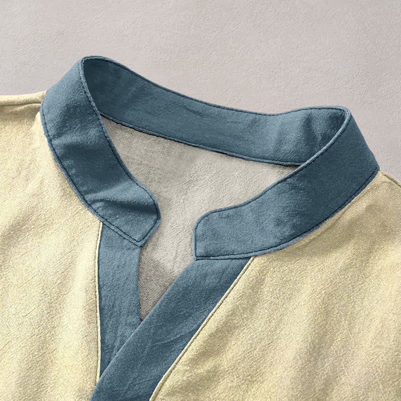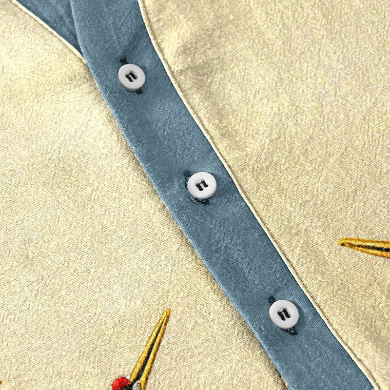 Buddha Stones Cotton Crane Wave Emblem Men's Short Sleeve Half Button Shirt - LightGoldenrodYellow - US/UK/AU50,EU60 (5XL) - image 0
