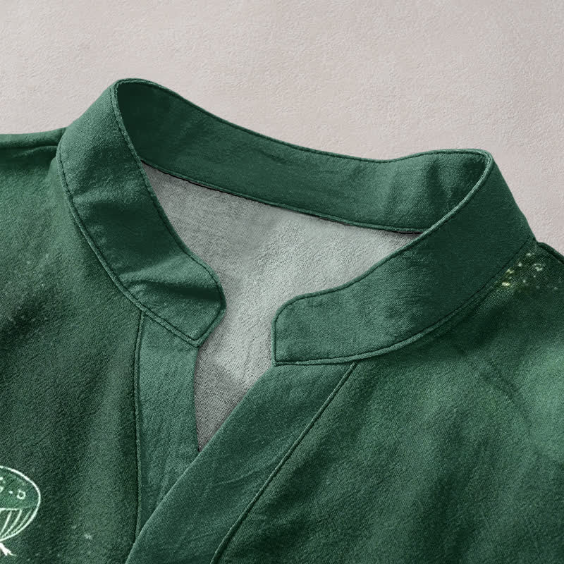 Buddha Stones Cotton Lotus Pattern Men's Short Sleeve Half Button Shirt - MediumSeaGreen - US/UK/AU50,EU60 (5XL) - image 0