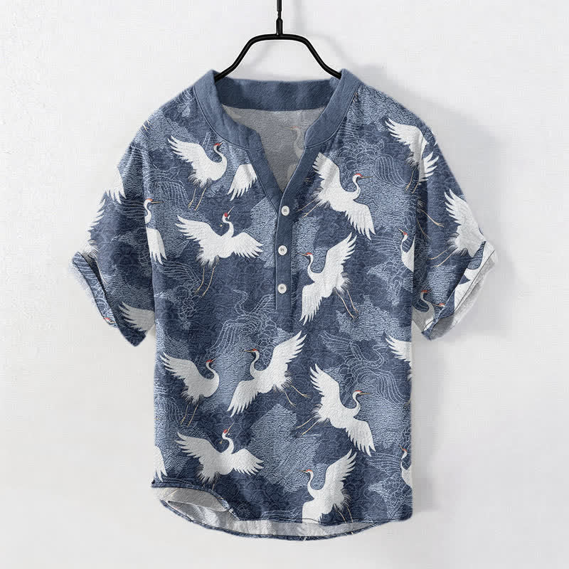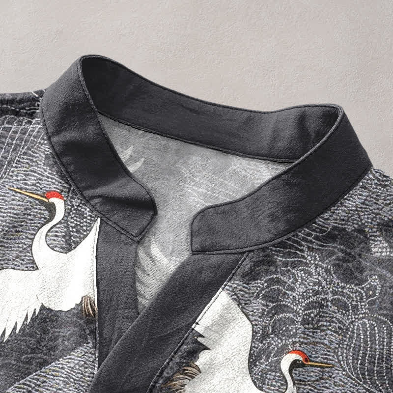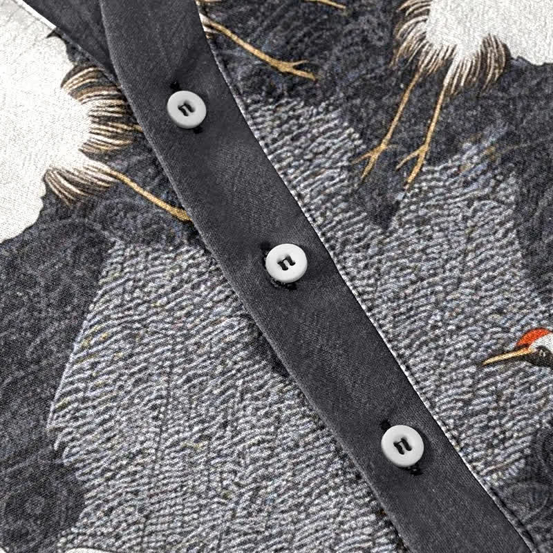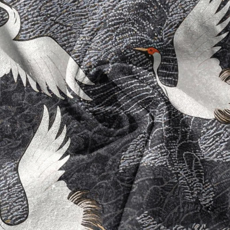 - Design: The repeated white crane motif evokes East Asian traditional aesthetics. It symbolizes longevity, elegance and freedom. It enhances a relaxed resort vibe and strong visual contrast on the fabric.