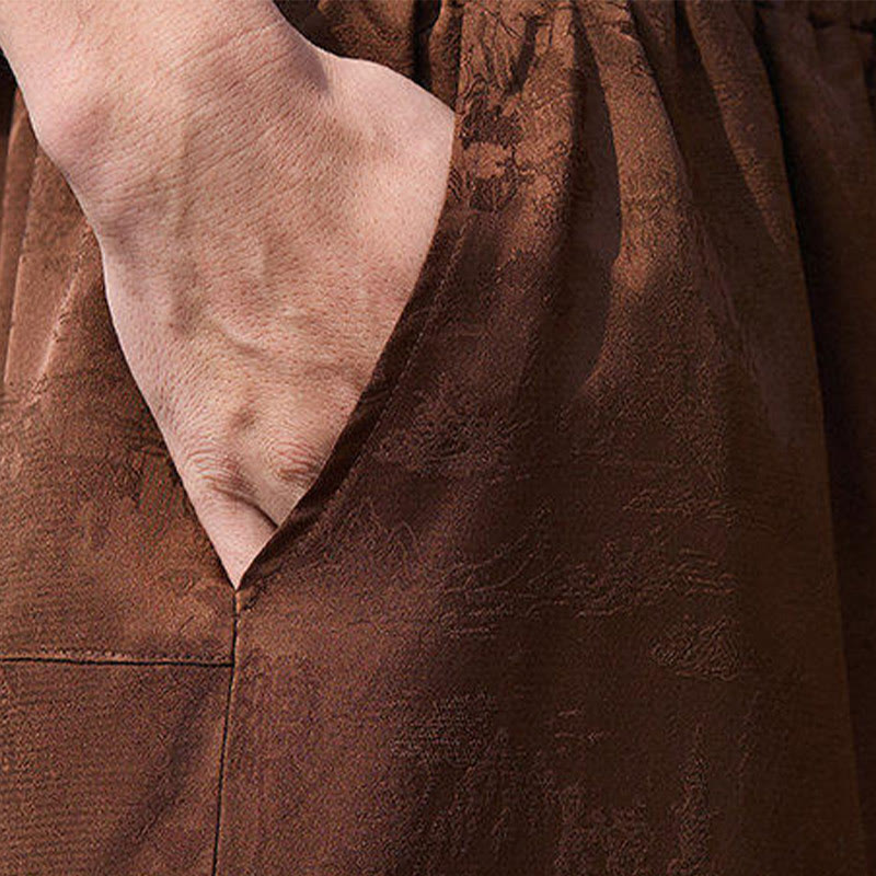 Buddha Stones Summer Character Embroidery Design Drawstring Men's 7-8 Length Pants With Pockets - SaddleBrown - US/UK/AU46,EU56 (5XL) - image 8