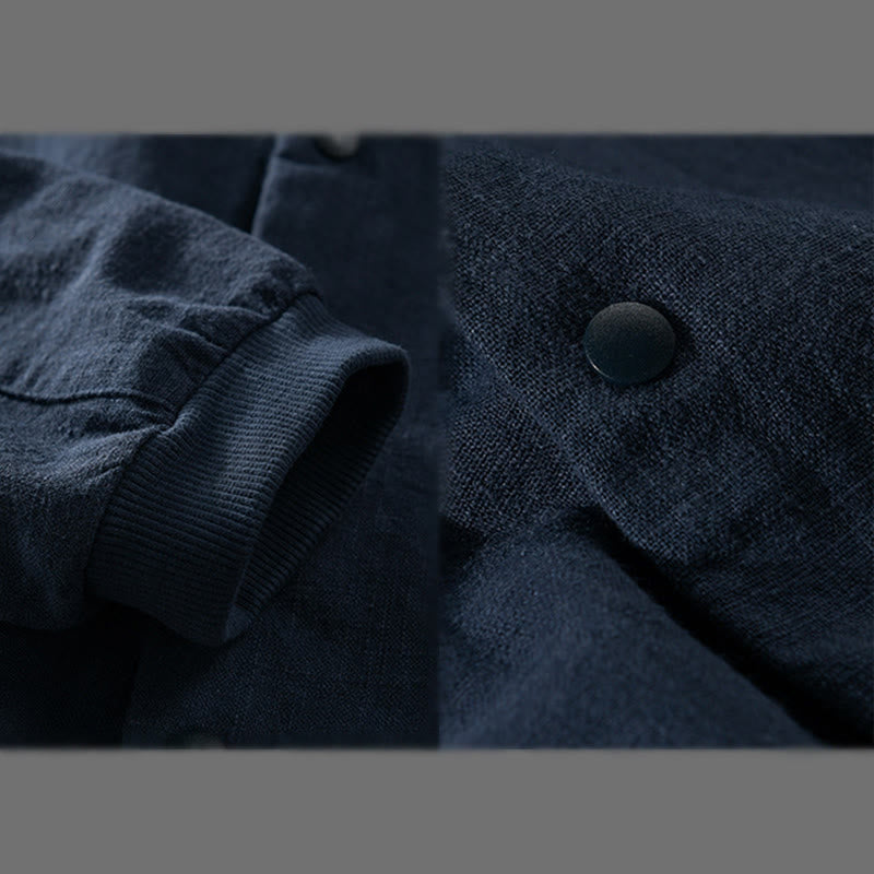 Buddha Stones Ribbed Long Sleeve Design Men's Cotton Linen Jacket Shirt With Pockets - Navy - US/UK/AU42,EU52 (3XL) - image 12