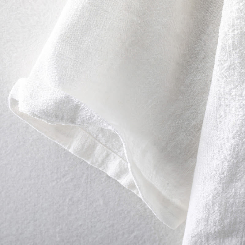 Buddha Stones Summer Casual Solid Color Button Design Stand Collar Men's Short Sleeve Cotton Linen Shirt WIth Pockets