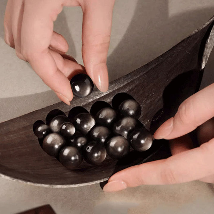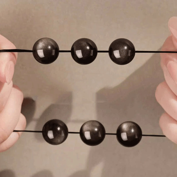 Buddha Stones Natural Silver Sheen Obsidian Om Mani Padme Hum Protection Bracelet