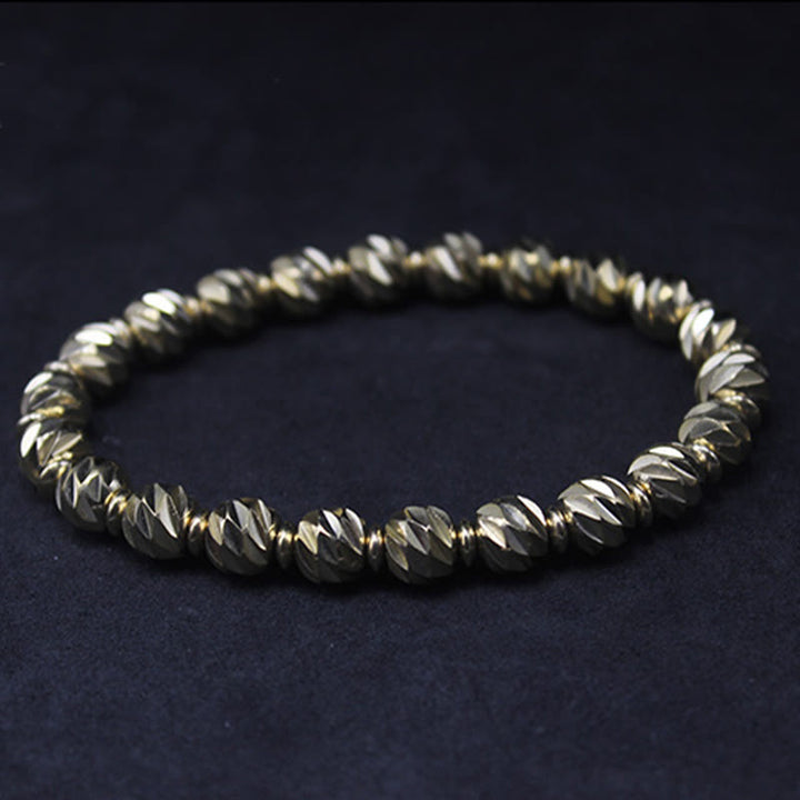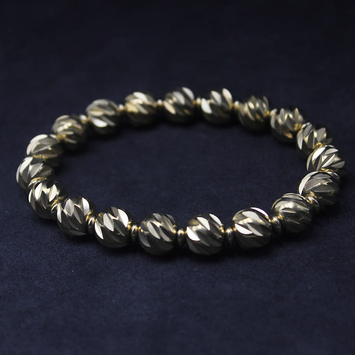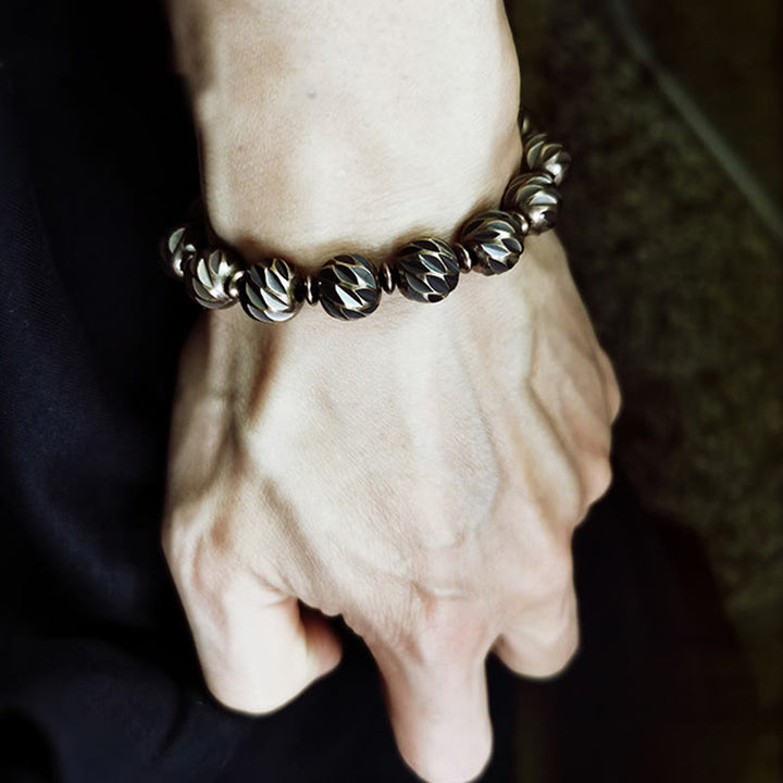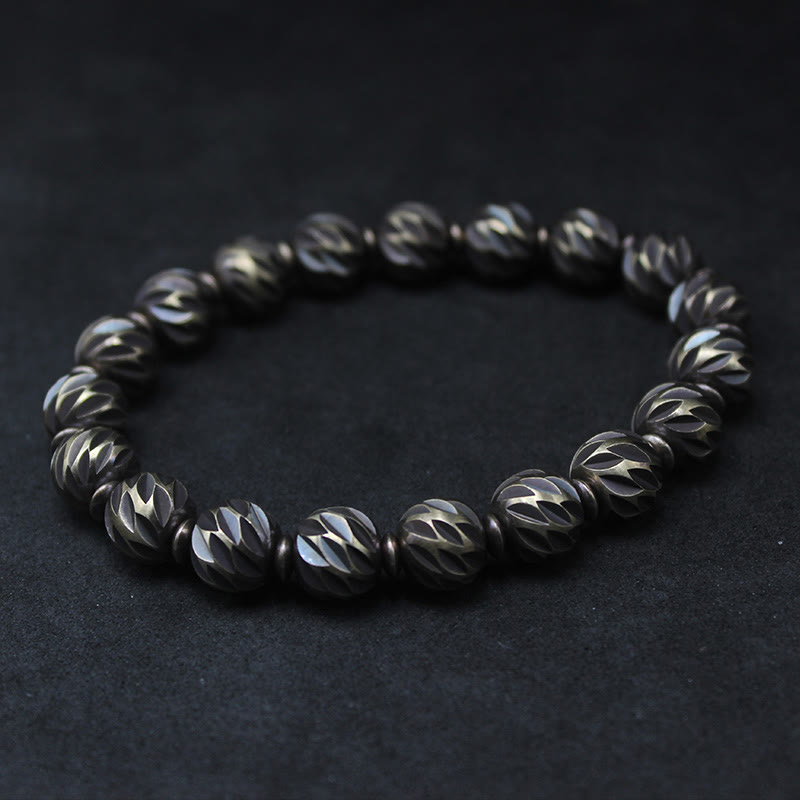 Buddha Stones Vintage Distressed Knife Carving Pattern Copper Brass Beads Wealth Bracelet