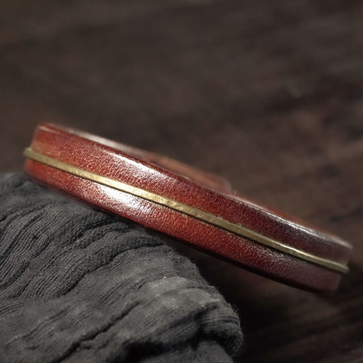 Buddha Stones Vintage Leather Copper Brass Wire Healing Bangle Bracelet