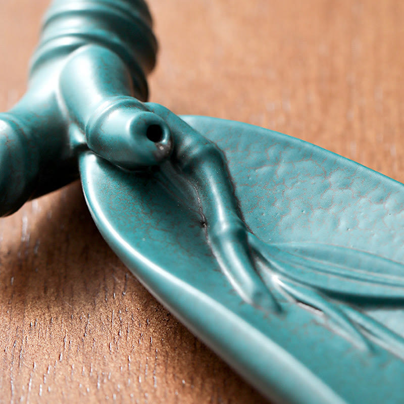Buddha Stones Three Stones Waves Butterfly Bamboo Healing Ceramic Stick Incense Burner Decoration - Bamboo 26*5.6*2.3cm - image 15