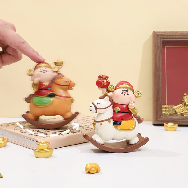 Buddha Stones Year Of The Horse God of Wealth Money Bag Success Prosperity Desk Decoration - SandyBrown Horse&God of Wealth(11*8.5*4.5cm) - image 1