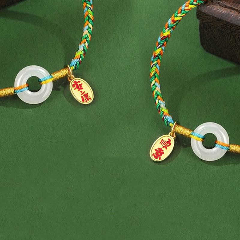 Buddha Stones Handmade Peace Buckle Jade Prosperity 925 Sterling Silver Colorful Rope Bracelet