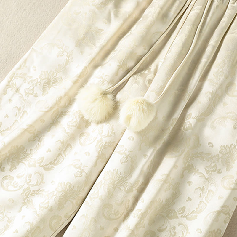 Buddha Stones Jacquard High Waist Design Women's Wide Leg Thermal Thickened Pants With Pockets