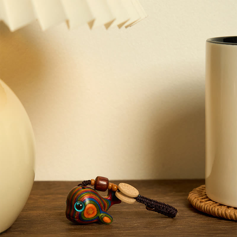 Buddha Stones Rainbow Eucalyptus Dolphin Carved Positive Key Chain Phone Hanging Decoration - Key Chain - image 0