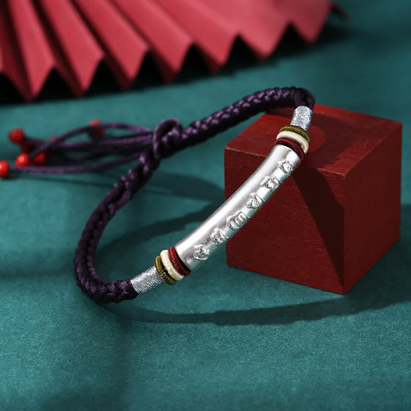 Buddha Stones 999 Sterling Silver Om Mani Padme Hum Protection Strength String Bracelet - 999 Sterling Silver - Dark Purple(Bracelet Size 16+4.5cm) - image 17