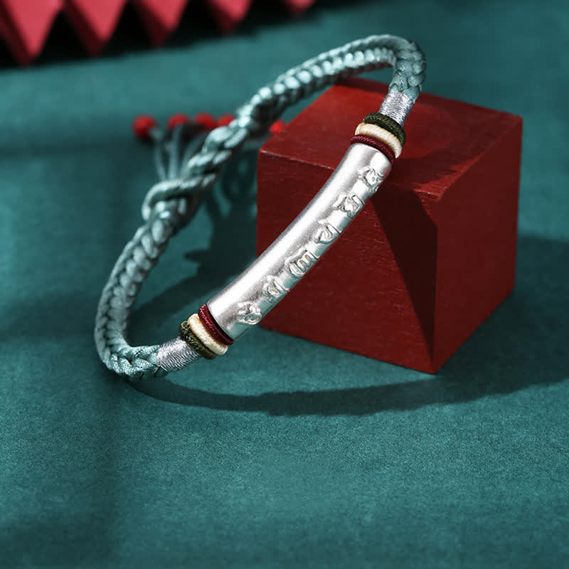 Buddha Stones 999 Sterling Silver Om Mani Padme Hum Protection Strength String Bracelet